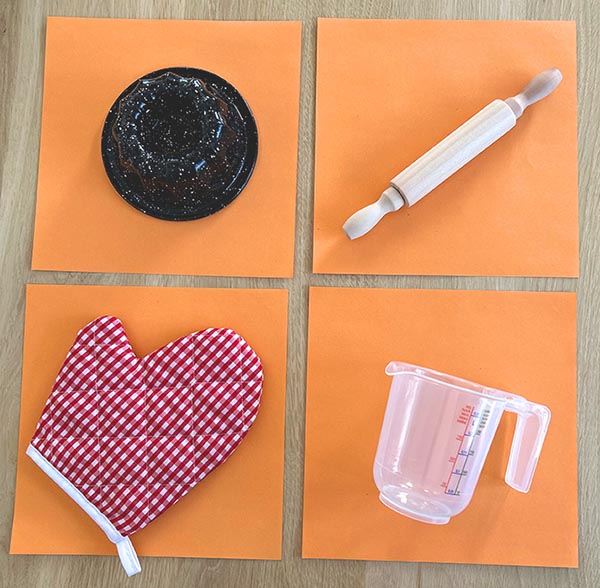 Laat de kinderen in de klas woorden of voorwerpen zoeken die passen bij het onderwerp. Dit kunnen elementen zijn die centraal staan in een prentenboek, aansluiten bij het woordenschataanbod of passen binnen het thema waaraan op dat moment gewerkt wordt. De gekozen woorden of voorwerpen vormen samen het Denkvierkant.