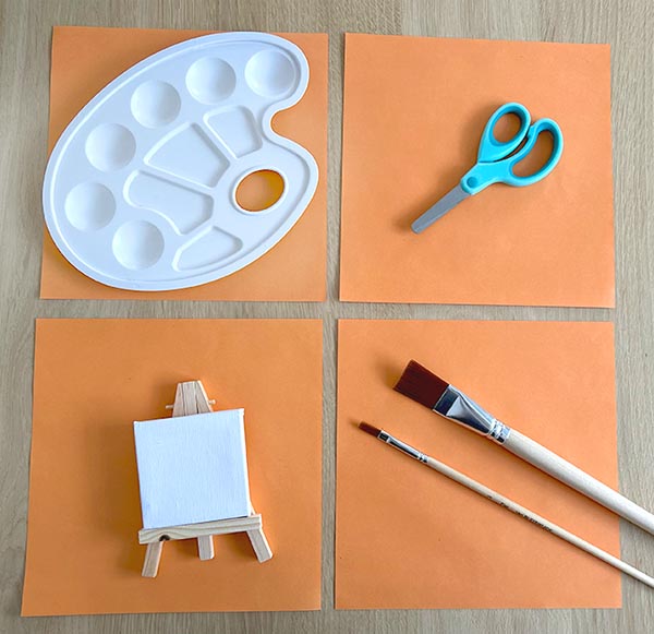 Vier vouwbladen, diverse voorwerpen uit de klas.