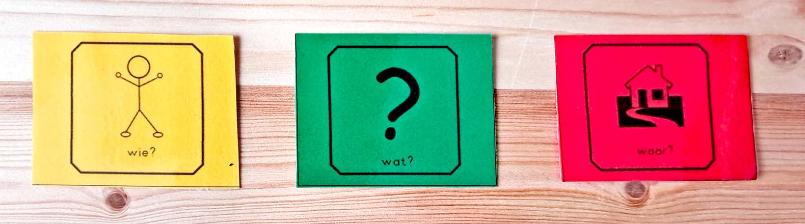 Een variant bij tip 4 is om wie, wat en waar op drie kleuren papier te printen en te lamineren. Elke leerling krijgt na het voorlezen een gekleurd kaartje en gaat op zoek naar een klasgenoot met hetzelfde kaartje. Samen bespreken ze de vraag op het kaartje. Daarna zoeken de leerlingen een klasgenoot op met een ándere kleur. Zo komen alle kinderen in korte tijd veel te weten over het verhaal.