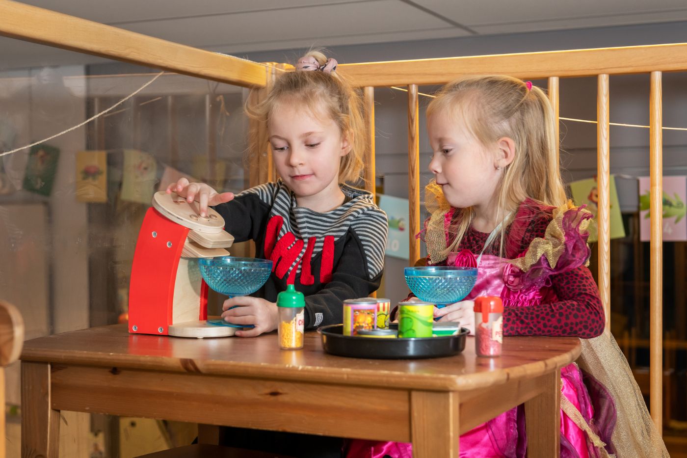 Functionele schrijfactiviteiten krijgen een plek in spelsituaties. Kinderen ervaren in de hoeken dat je iets duidelijk kunt maken via tekeningen, krabbels, tekens, letters of cijfers (Van den Berg et al., 2019). In het spel kunnen kinderen nog niet ‘echt’ lezen en schrijven, maar doen ze anderen na die dat wel doen, omdat dit hoort bij hun rol (Janssen-Vos & Nellestijn, 2005). De rol die kinderen in het rollenspel spelen, bepaalt welke taal ze gaan gebruiken en hoe uitgebreider het spel, hoe complexer de benodigde taal is. Het spel is hierdoor de plek waarin alle vaardigheden die nodig zijn voor het leven in samenhang voorkomen, omdat spel over het leven zelf gaat (Boland, 2019). En zeggen we: ‘spelen over het dagelijkse leven’, dan zeggen we: ‘spelen in de huishoek’. De huishoek moet in de eerste plaats de speelplek zijn die kinderen kansen geeft om echt huiselijke activiteiten te imiteren en te spelen, zoals het aan- en uitkleden van zichzelf of poppen, het koken van eten, het dekken van de tafel, het kijken naar de tv en het doen van de was, maar ook is het van belang dat de speelplek voldoende mogelijkheden geeft voor echt lezen en schrijven, zoals dat in het dagelijks leven ook een plek krijgt. Kinderen kunnen spelenderwijs de functie van gedrukte en geschreven taal ervaren in de speelhoeken waar het dagelijks leven wordt nagebootst (Van den Berg et al., 2019). De inrichting nodigt daartoe uit.