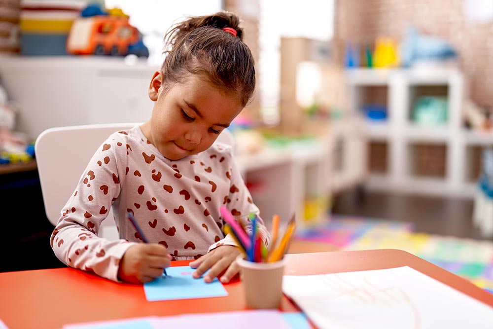 Nodig hen uit om de eigen naam te schrijven. Zoek in spelsituaties naar schrijfaanleidingen die passen binnen die context. Als kinderen boodschappen doen in hun spel, zorg jij voor pen en papier voor een boodschappenlijstje.