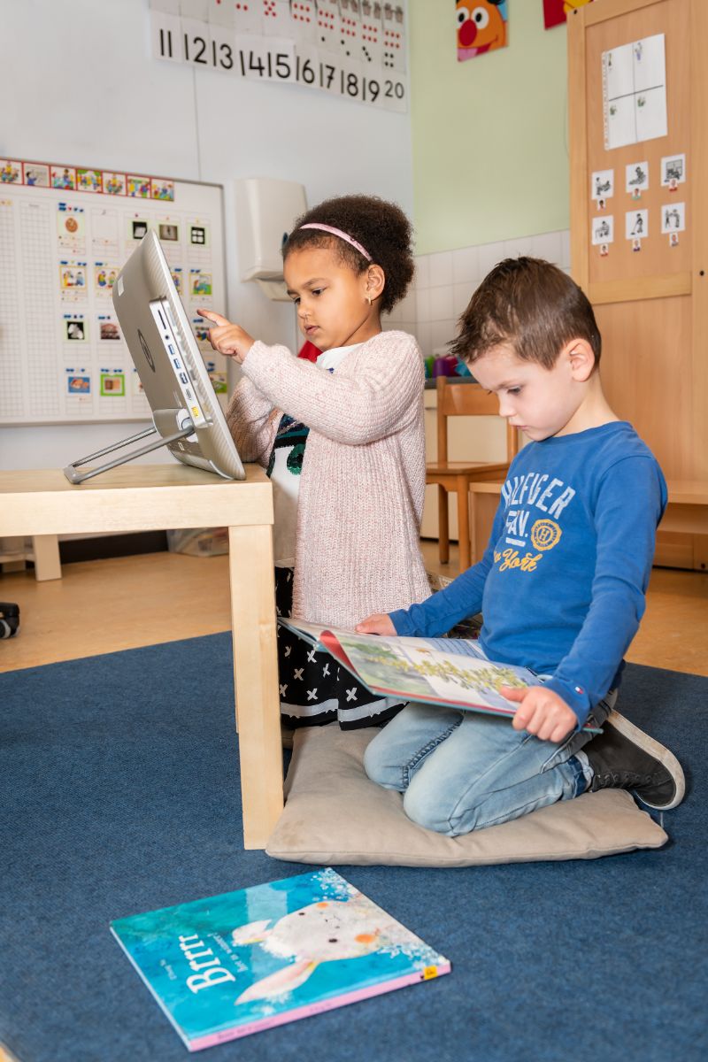 Het blijkt dat, met de juiste digitale techniek, digitale prentenboeken effectiever zijn voor de taalontwikkeling dan papieren prentenboeken. Breng daarom digitale prentenboeken op meerdere manieren en momenten onder de aandacht, zowel op school als thuis.